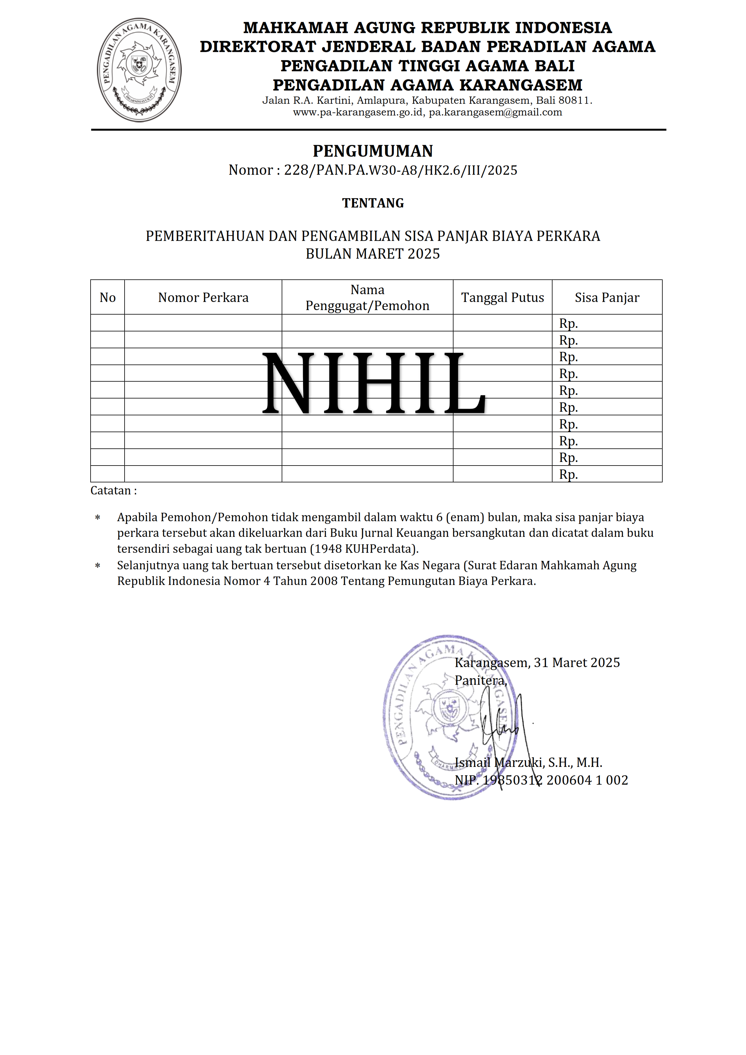 Pengumuman Sisa Panj....Pengadilan Agama Karangasem