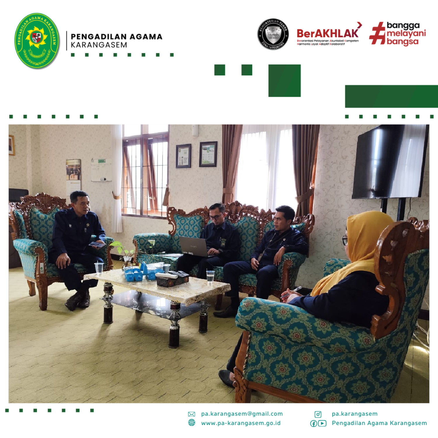 Senada dengan hal di atas, Pengadilan Agama (PA) Karangasem melalui Tim Badan Pertimbangan Jabatan dan Kepangkatan (Baperjakat) mengadakan kegiatan rapat yang dipimpin oleh Wakil Ketua, Isyhad Wira Budiawan, S.H.I., M.H, serta dihadiri oleh Panitera, Sekretaris dan Kasubbag Kepegawaian Ortala sebagai langkah untuk melaksanakan Manajemen ASN. Kegiatan yang dilaksanakan di ruang Wakil Ketua tersebut merupakan agenda rutin yang dilaksanakan dalam rangka memetakan komposisi Sumber Daya Manusia (SDM) di PA Karangasem.