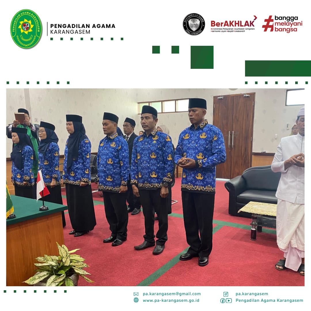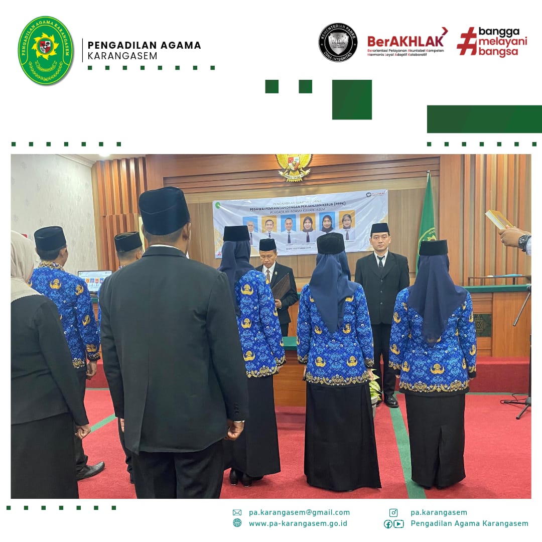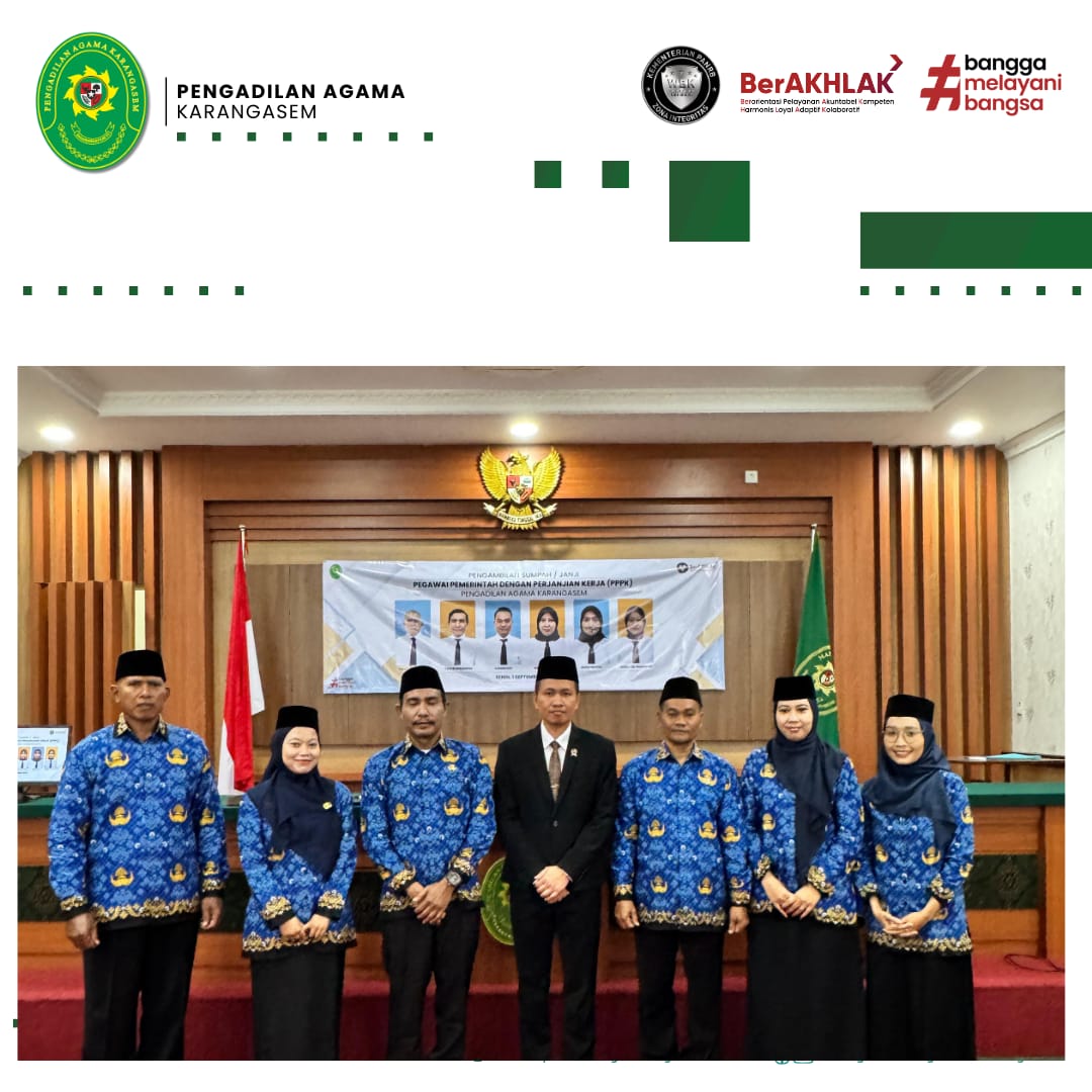 KARANGASEM – Pengadilan Agama (PA) Karangasem melaksanakan kegitan Pengambilan Sumpah/Janji Pegawai Pemerintah Dengan Perjanjian Kerja (PPPK), Senin, 01 September 2025 di ruang sidang utama. Kegiatan tersebut merupakan tindak lanjut dari Surat Keputusan Sekretaris Mahkamah Agung Republik Indonesia terkati dengan pengangkatan PPPK Tahun Anggaran 2024 di lingkungan peradilan seluruh Indonesia.